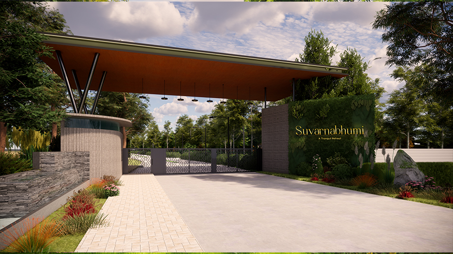 At Suvarnabhumi, the landscape isn’t just designed, it’s envisioned as a harmonious blend of nature and sustainability. The journey begins with a grand entrance that stands as a quiet statement of eco-conscious living, inviting you into a realm where modern comforts meet organic farming. Pathways wind through productive plantations, leading to spaces curated for peaceful connection with nature. The balance between open farmland and thoughtful amenities ensures every aspect serves both productivity and pleasure.